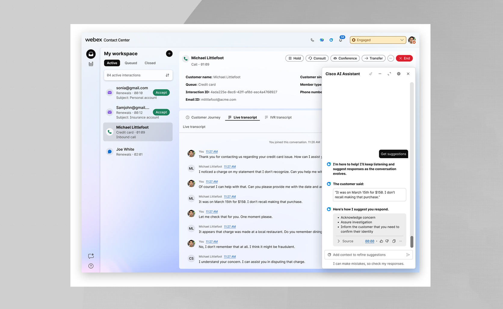 We imagine instruments ought to work for you, not the opposite method round. The new Agent Desktop is designed to really feel immediately acquainted and extremely straightforward. Whether or not you’re fielding calls with Webex Calling, persevering with an interplay handed over from Webex AI Agent, or collaborating with teammates by way of Webex Messaging, every part is unified for easy productiveness.